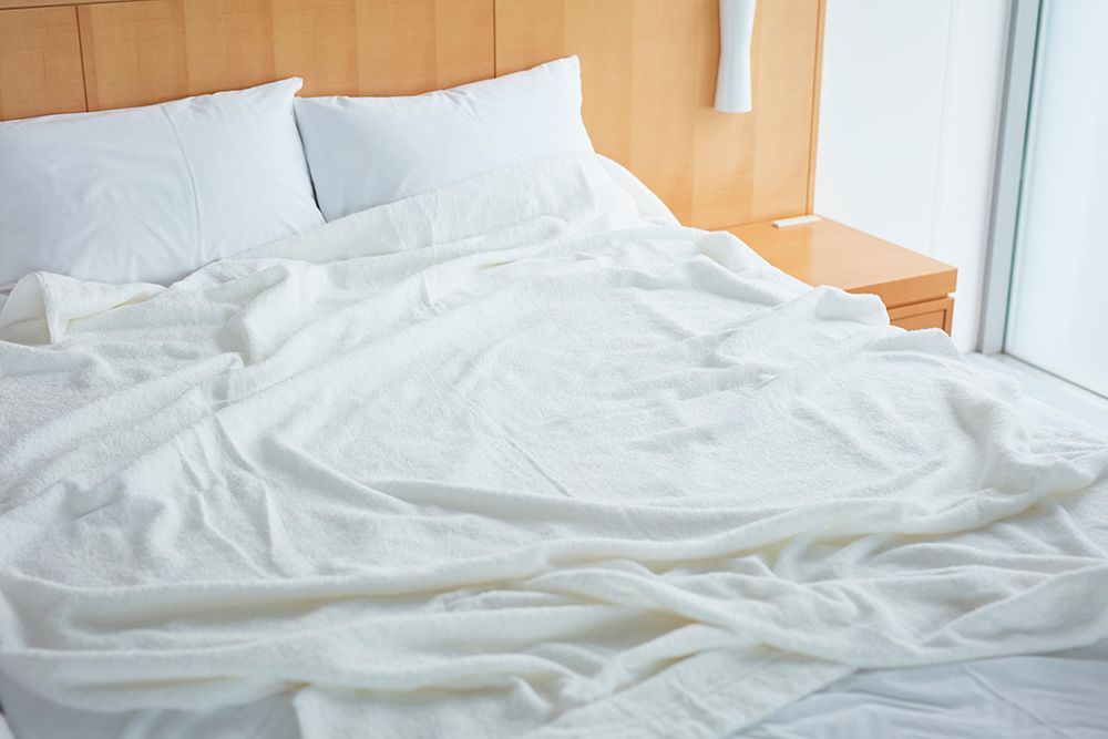 シルクのような光沢を持つバンブー素材を織り交ぜることにより、よりしなやかで軽く、贅沢な風合いのタオルケットとなりました。コットンと比べると、バンブーは素早く水分を拭き取り、放出してくれる性質を持つので、寝汗をすっと吸い取ってくれて、寝苦しい夜も蒸れずに心地よくお過ごしいただけます。
