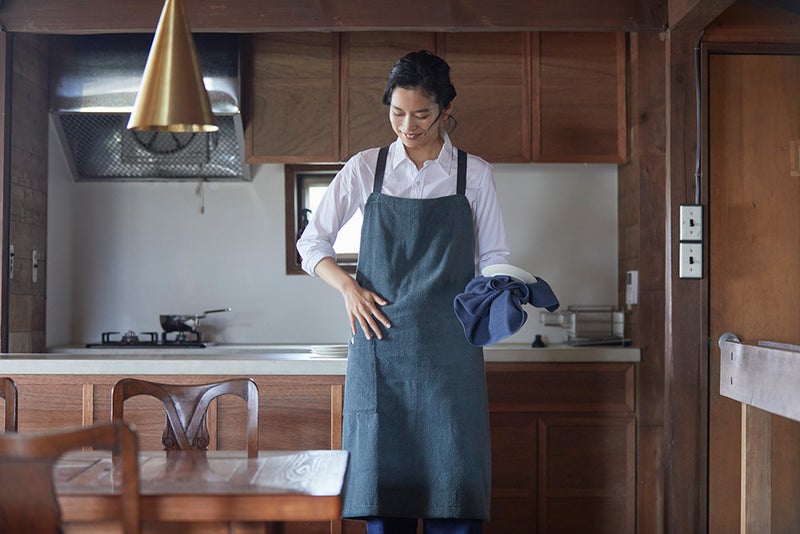 ありそうでなかった、暮らしの中で頼れるタオルエプロン。家事の合間にキッチンへ行ったり、お風呂場へ行ったり、お庭に出たり。日々の暮らしの中では、思った以上にあちこち動き回るものです。そんな時も、IKEUCHI ORGANICのタオルがいつもそばに。エプロンのタオル地で、手を拭きたい時にすぐ拭けるので、とても便利です。水仕事の多い家事はもちろん、ガーデニングや掃除、介護の場面など、さまざまなシーンで活躍する、実用性に優れた一枚です。