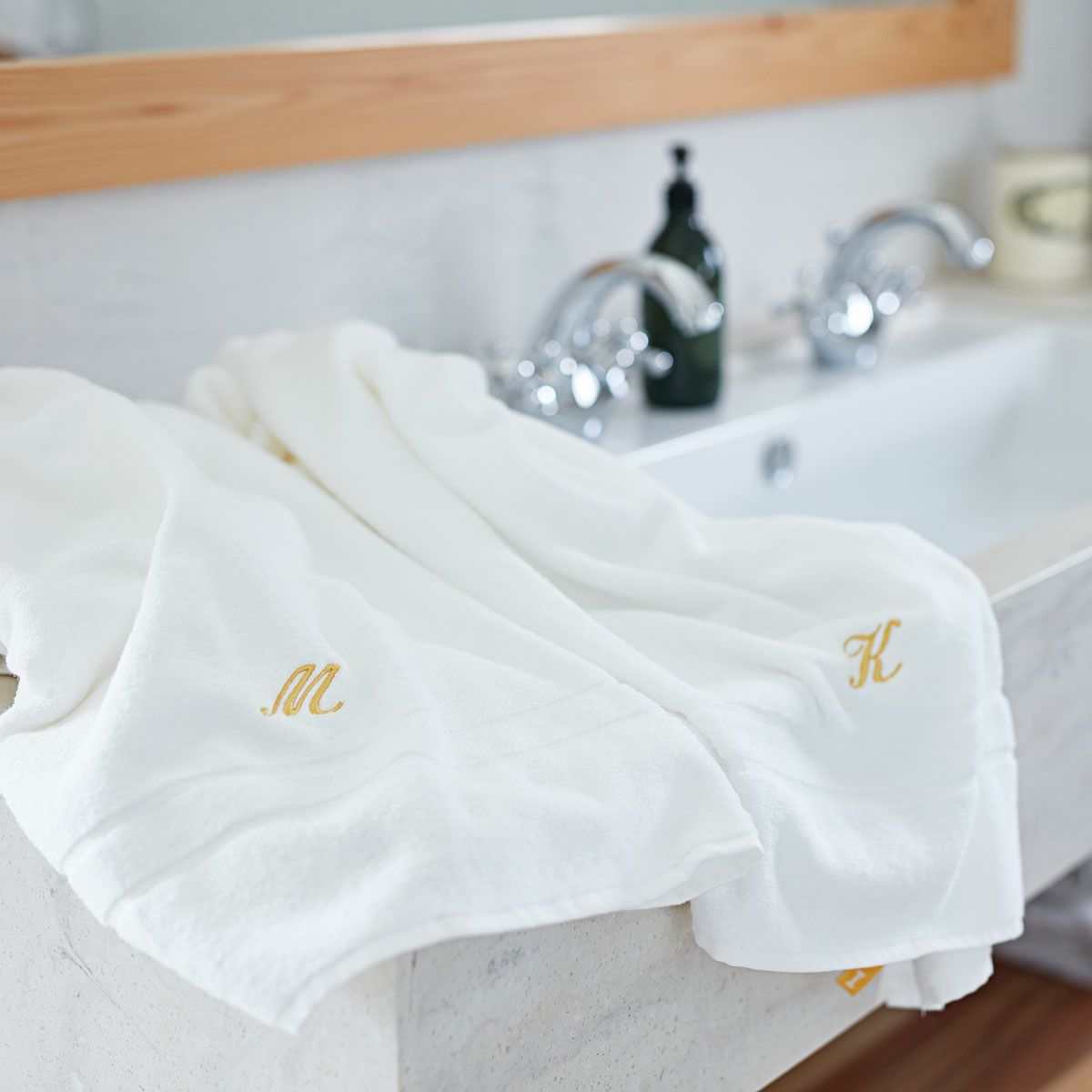 サウナタオル:セリフ1cm・ゴールド刺繍