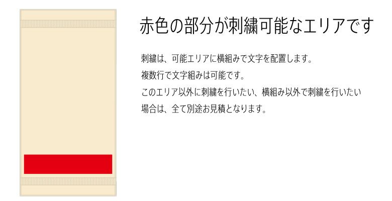 ユニークな文字入れで、世界に一つしかないオリジナルタオルをお作りすることもできます。*9文字上は、別途お見積りとなります。