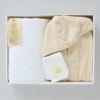 たっぷりサイズの大判バスタオルとベビーローブが入ったギフトセットです。ベビーローブは、生まれた時はおくるみとして、その後はお風呂上がりや水遊び後のバスローブとして、赤ちゃんの成長に合わせてさまざまな使い方ができます。レモンの刺繍が入った可愛らしいタオルハンカチを無料でお付けした、数量限定のベビーギフトセットです。