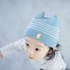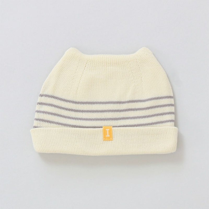 オーガニックコットンで編んだ無縫製ニットのベビーシリーズ、『オーガニックKB2』のベビーキャップ。優しい肌触りのオーガニックコットンのニット生地が、生まれたての赤ちゃんの肌にストレスをかけることなく優しく包んでくれます。