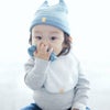 通気性の良いオーガニックコットンのニット生地なので、夏場は汗を吸って素早く外に逃がし、冬場は寒さから赤ちゃんを守ってくれます。少し大きめサイズなので乳児期~幼児期まで長くお使いいただくことができます。