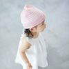 オーガニックコットンで編んだ無縫製ニットのベビーシリーズ、『オーガニックKB2』のベビーキャップ。優しい肌触りのオーガニックコットンのニット生地が、生まれたての赤ちゃんの肌にストレスをかけることなく優しく包んでくれます。